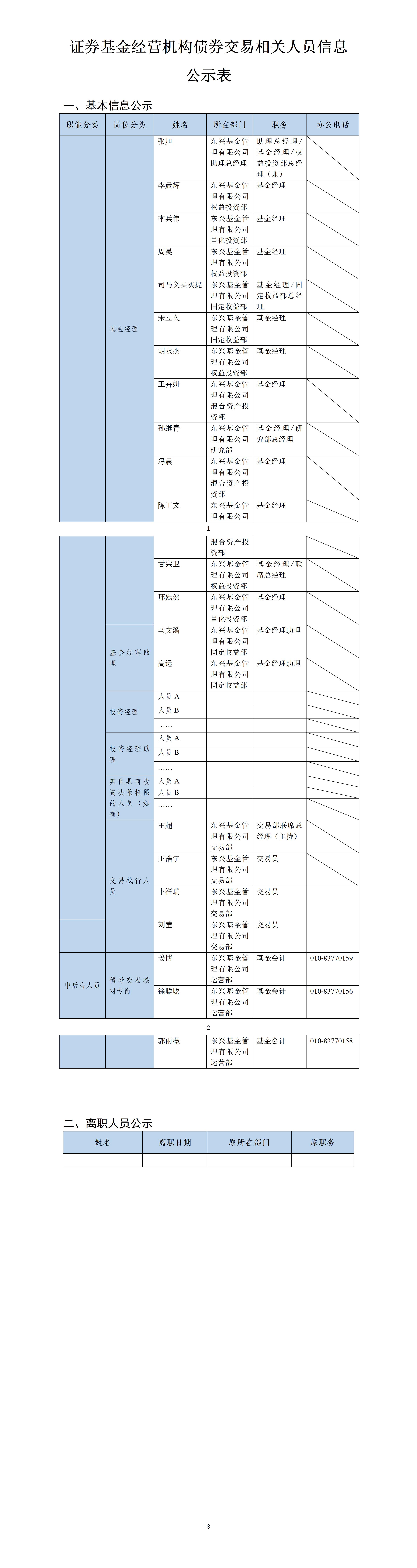 债券投资交易人员公示